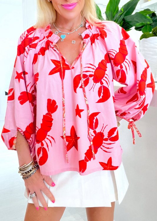 Adjustable Sleeves Lobster And Starfish Print Top